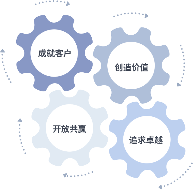 成就客户是一切决策的出发点,创造价值是衡量所有工作的标准,追求卓越是尊龙凯龙时官网进入做事做人的态度,开放共赢是尊龙凯龙时官网进入的格局也是最终的结果。价值观的齿轮环环相扣,推动着组织里的每个人不断向前。